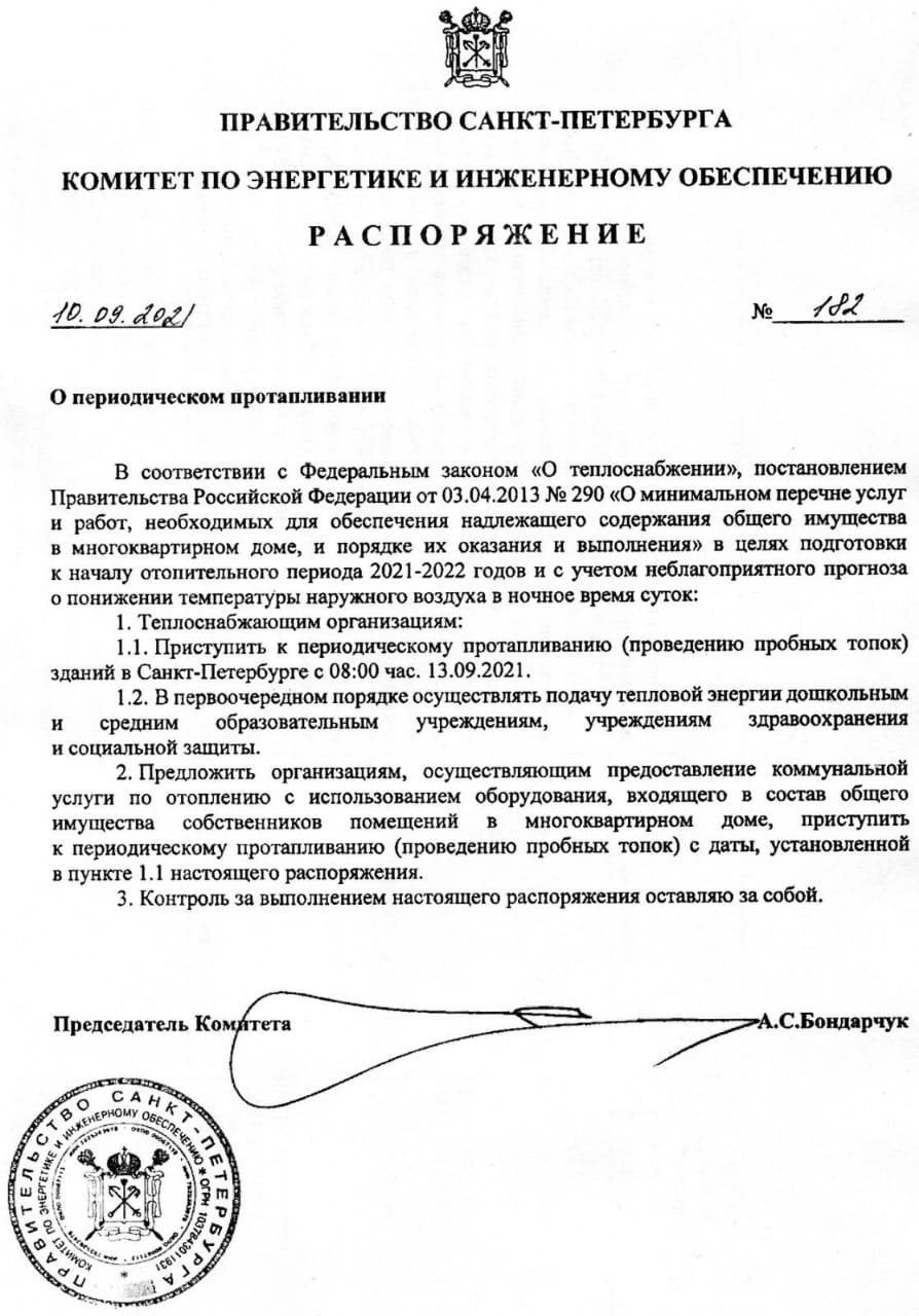 Распоряжение о периодическом протапливании во вложении.