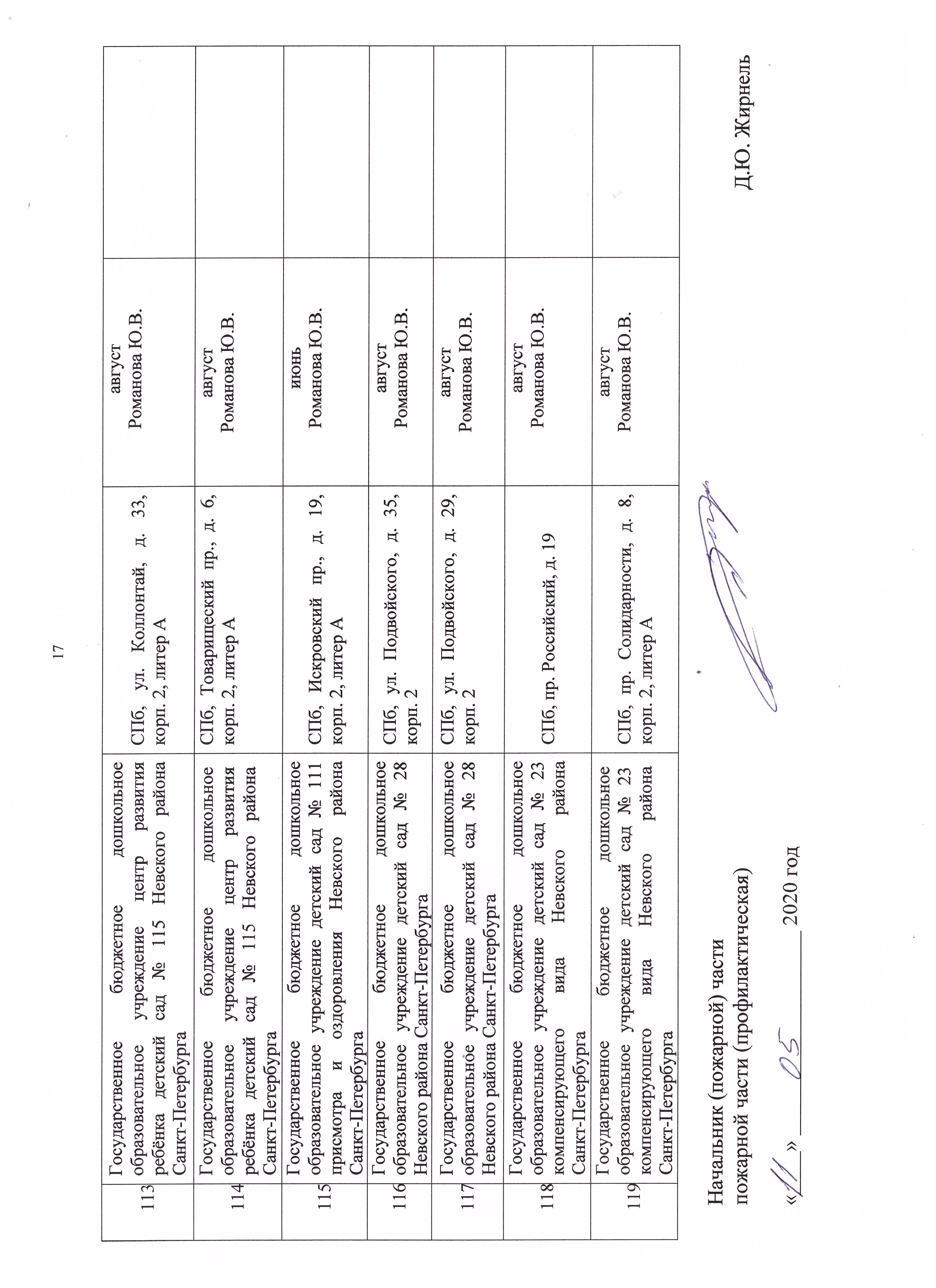 Направляем Вам график проведения пожарно-профилактических мероприятий по соблюдению требований пожарной безопасности при подготовке к 2020-2021 учебному году и отопительному сезону.